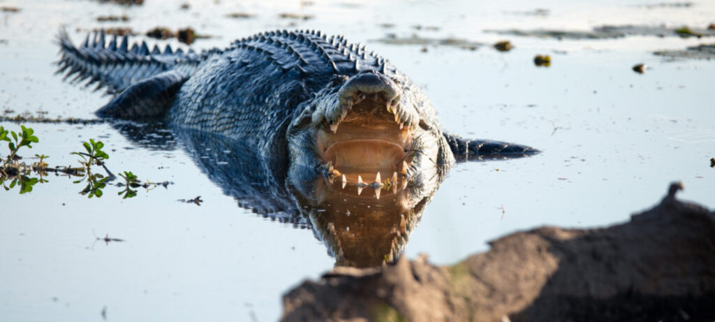 Long thought to be solitary and anti-social, estuarine crocodiles are considered extremely aggressive. They often exhibit violent behavior toward other animals and members of their own species that can lead to severe injury or death.